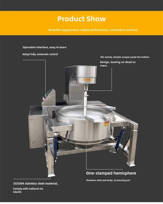 Besonders geeignet für die Herstellung verschiedener Gewürzsoßen wie Chilisauce, Bohnenpaste und Tomatensauce.Vermeidung lokaler Überhitzung, die den Geschmack beeinträchtigen könnte.
