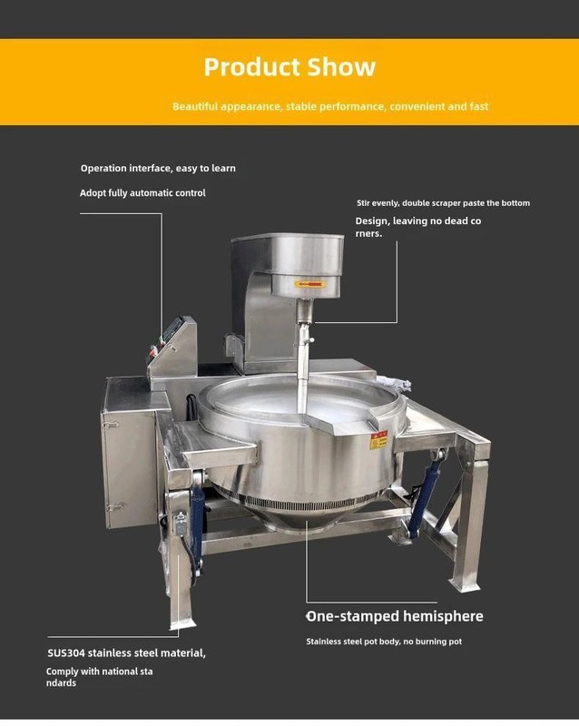 Besonders geeignet für die Herstellung verschiedener Gewürzsoßen wie Chilisauce, Bohnenpaste und Tomatensauce.Vermeidung lokaler Überhitzung, die den Geschmack beeinträchtigen könnte.